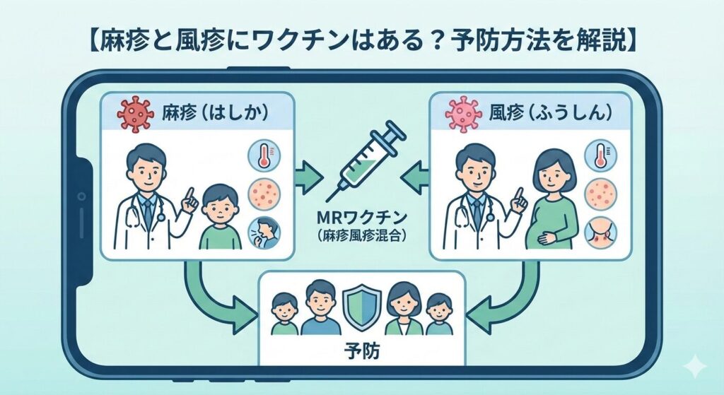 麻疹と風疹はいずれもワクチンで予防できる感染症です。特に麻疹は感染力が非常に強いため、ワクチンによる免疫の獲得がもっとも有効な予防方法とされています。