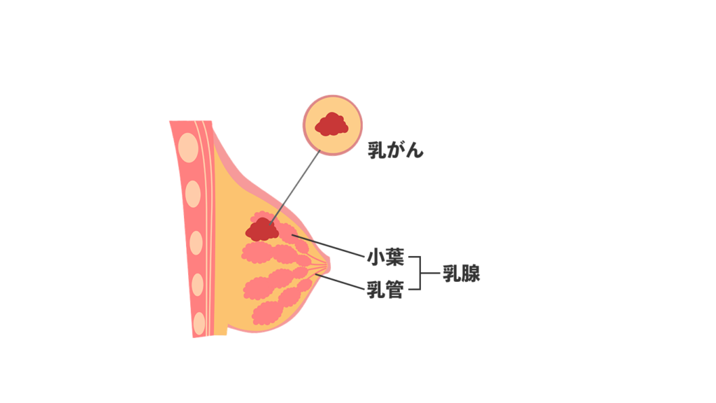 乳がんとは、乳房にある乳腺にできる悪性腫瘍のことです。