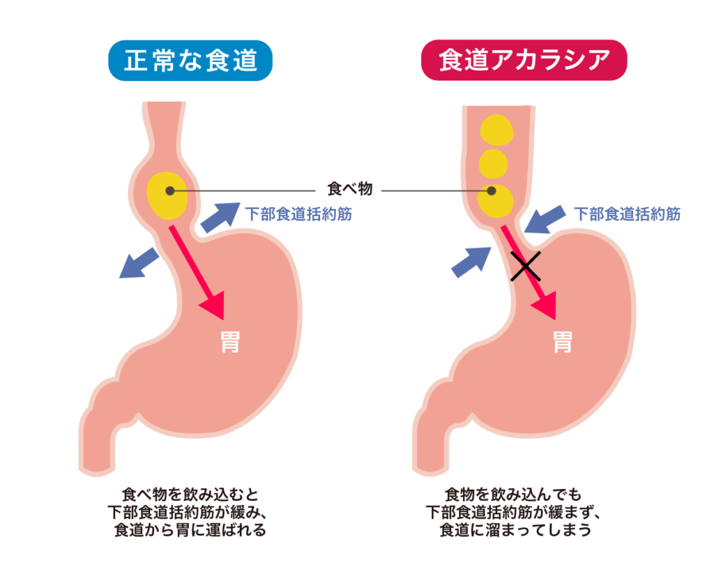 食道アカラシアとは、食道の運動機能に障害が生じ、飲食物が胃にうまく送り込まれなくなる病気です。